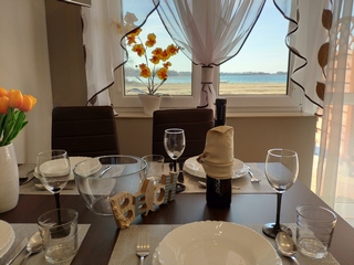Pokój nr 2 (4 os) - z widokiem na plażę. Wejście do pokoju niezależne, bezpośrednio z plaży. Taras 9m2.