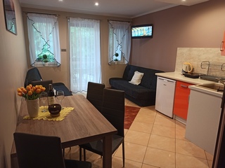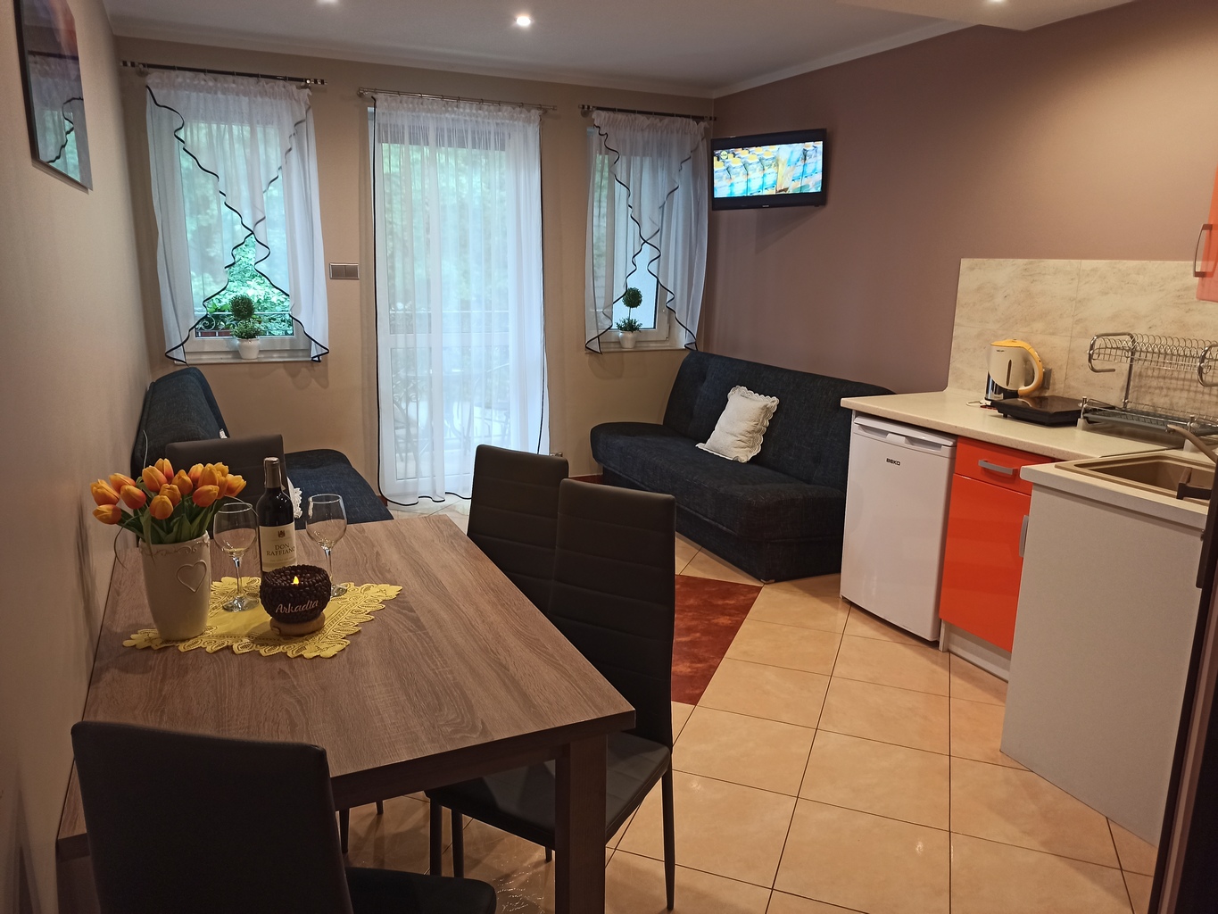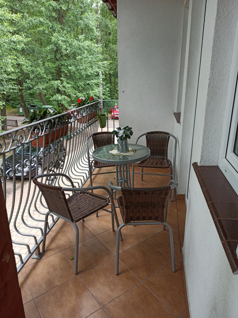 Pokój nr 6 (4 os.) - pokój z balkonem z widokiem na las i domki. Wejście klatką schodową od al. Plażowej.