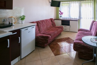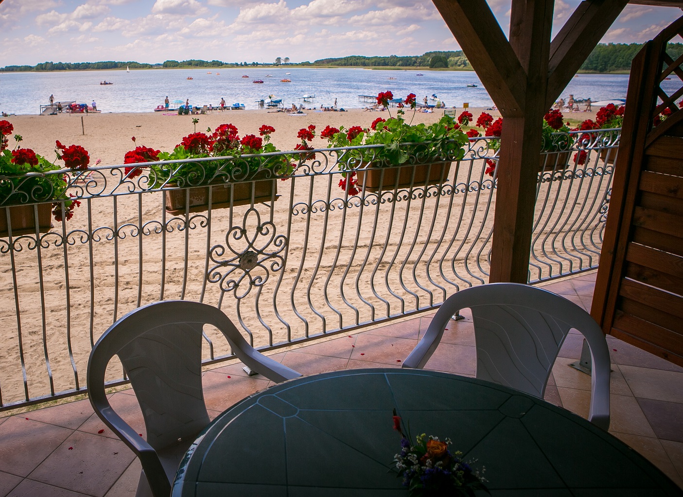 Pokój nr 8 (4 os.). Pokój na piętrze z balkonem z widokiem na jezioro i plażę. Wejście bezpośrednio przy plaży od strony al. Plażowej.