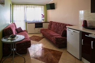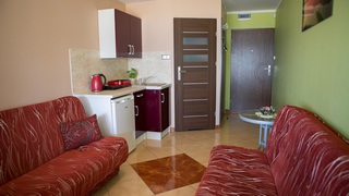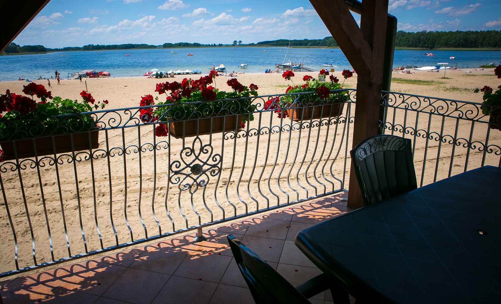 Pokój nr 9 (4 os.). Pokój na piętrze z balkonem z widokiem na jezioro i plażę. Wejście bezpośrednio przy plaży od strony al. Plażowej.